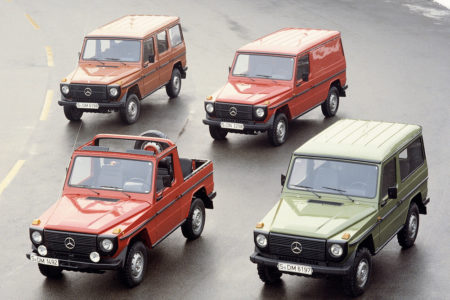 Aber auch die UdSSR erreichte beachtliche Marktanteile mit ihrem UAZ (40.000 Stück) und dem Lada Niva mit 10.000 Einheiten pro Jahr. Den Kampf um das Marktgeschehen nimmt Mercedes-Benz/Daimler-Steyr-Puch mit einem Fahrzeugangebot auf, das extreme Geländegängigkeit mit hervorragender Straßenlage kombiniert. Die vier Mercedes-Benz-Geländewagen 240 GD (2399 ccm 4-Zylinder-Vorkammer-Diesel, 53 kW/72 PS, 105 km/h, DM 31.192,- bis DM 38.080,-), 300 GD (2998 ccm 4-Zylinder-Vorkammer-Diesel, 59 kW/80 PS, 114 km/h, DM 32.984,- bis DM 39.872,-), 230 G (2307 ccm 4-Zylinder, 75 kW/102 PS, niederverdichtete Version 66 kW/90 PS – 122 km/h, DM 29.736,- bis DM 36.624,-) sowie der 280 GE (2746 ccm, 6-Zylinder mit Benzineinspritzung, 110kW/150 PS, 150 km/h ca. DM 40.000,-) werden in jeweils zwei Radständen von 2.400 mm und 2.850 mm angeboten, wobei zwischen den Aufbauarten – offene Version, Kastenwagen oder Stationswagen – den Ansprüchen entsprechend gewählt werden kann.
