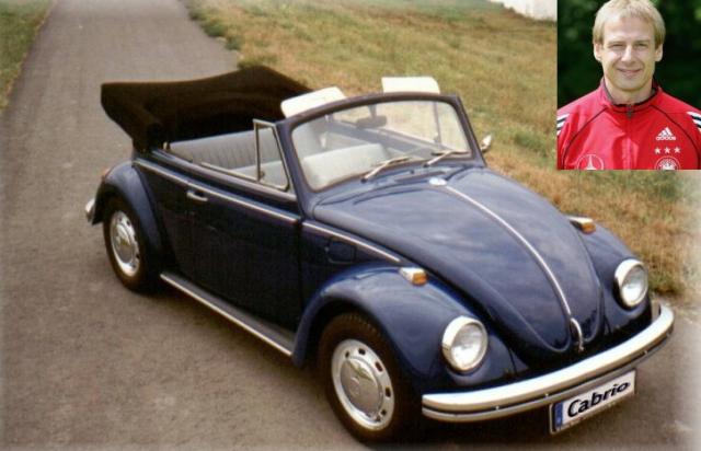 Auch bei seiner Wahl seines fahrbaren Untersatzes unterschied sich der gelernte Bäcker aus Baden-Württemberg von seinen Fußball-Kollegen, statt eines teuren Sportwagen oder einer schweren, großen Luxus-Limousine, fuhr Klinsmann, einen VW Käfer Cabrio.