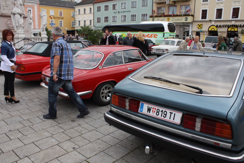 Hierzu traf man sich am Hauptplatz in Wiener Neustadt und fuhr gemeinsam mit den verschiedensten Oldtimern ins Schloss Kobersdorf.